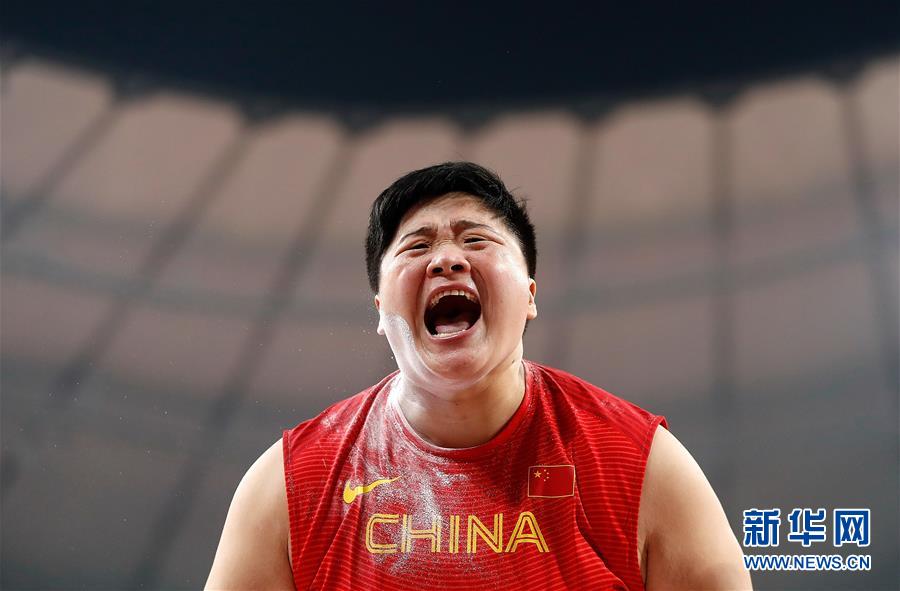 當日,在卡塔爾多哈舉行的2019國際田聯(lián)世界田徑錦標賽女子鉛球決賽中,衛(wèi)冕冠軍、中國選手鞏立姣以19米55的成績奪得冠軍。 新華社記者王婧嬙攝