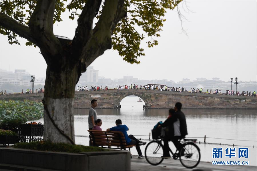 10月7日,游客在杭州西湖風景區(qū)休閑游玩。新華社記者黃宗治攝