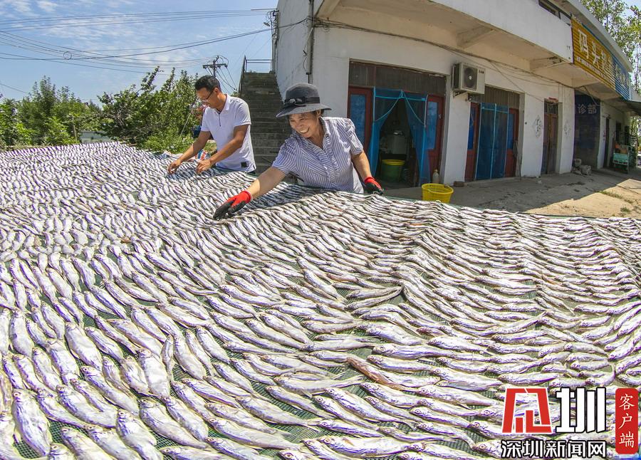 岸上,家家戶戶都在忙著晾曬剛捕撈上來(lái)的毛刀魚(yú)、小白魚(yú)和武昌魚(yú)。