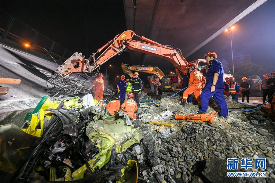 直擊無錫高架橋垮塌救援現場 三輛小車被壓