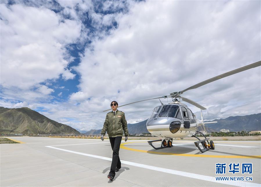 青藏高原一度被稱為“飛行禁區(qū)”,駕駛直升機難度極大。如今,經(jīng)過刻苦訓練,第一批藏族青年駕駛民用直升機飛到珠峰大本營。堅熱益西來自西藏當雄縣一戶貧困牧民家庭。一直以來,除了上學,她的生活都是圍繞著家里的牛羊,放牧、剪羊毛、做酥油,過著簡單平實的牧人生活。她喜歡做紙飛機,在草原上逆風放飛,“總有一天我會帶你們飛上天,從天上看我們的草原”,這句小時候無心的喃喃自語,讓她和天空不知不覺結(jié)下了緣分。但堅熱益西怎么也不敢想象,自己會夢想成真,成為一名真正的飛行員。2016年,在拉薩第二中等職業(yè)技術(shù)學校就讀的堅熱益西,接到了一個改變命運的電話——有一家公司要從建檔立卡貧困戶家庭中挑選飛行員,讓她去參加面試?!拔?guī)缀醪桓蚁嘈抛约旱亩?,飛行員的培訓費用那么高,這么好的機會怎么會降臨在我的頭上?”幫助堅熱益西圓夢的是江蘇若爾通用航空發(fā)展集團與拉薩市政府共同投資設(shè)立的拉薩雪鷹通用航空股份有限公司,這家公司主要開展緊急救援、醫(yī)療救護、環(huán)境保護、空中觀光、短途運輸?shù)韧ê綐I(yè)務(wù)。為帶動建檔立卡貧困戶脫貧,公司決定從拉薩籍精準扶貧對象子女中招聘16名飛行員和12名機務(wù)人員,并由若爾航空蘇州基地進行培訓。經(jīng)過十余門理論課程的學習、數(shù)百小時的高強度訓練,堅熱益西用一年的時間熟悉掌握飛行技巧,成功考取商用直升機飛行執(zhí)照。“培養(yǎng)一名飛行員成本很高,每人逾百萬元的培訓費全部由政府和企業(yè)承擔。這改變了我和家庭的命運?!眻詿嵋嫖髡f,“有一次駕駛直升機回到當雄執(zhí)行任務(wù),鄉(xiāng)親們夸我是飛上藍天的仙女,是當雄的驕傲?!毙氯A社記者晉美多吉攝