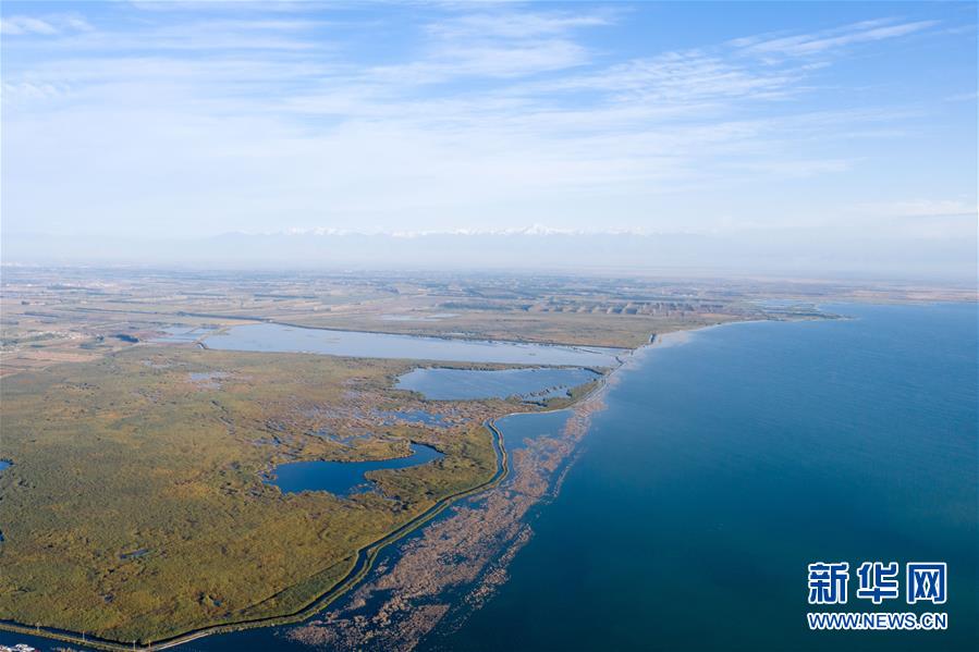 這是新疆博斯騰湖美景(10月12日無(wú)人機(jī)拍攝)。入秋以來(lái),新疆博斯騰湖碧波蕩漾,美景如畫(huà),吸引各地游客前來(lái)游玩。新華社記者丁磊 攝