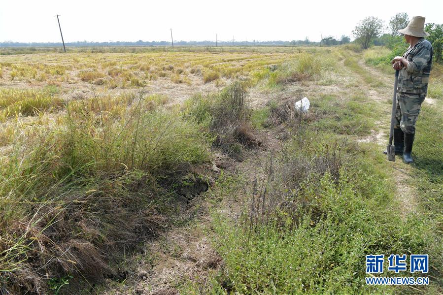 江西省南昌市南昌縣蔣巷鎮(zhèn)一農(nóng)戶在田里查看中稻的收割情況和晚稻的生長(zhǎng)情況,農(nóng)田兩側(cè)的水渠已干涸多日(10月10日攝)。 7月下旬至10月初,江西省平均降雨量為96毫米,比多年均值偏少約七成,排歷史同期倒數(shù)第一位,持續(xù)的少雨天氣導(dǎo)致江西省主要江河水位持續(xù)走低,多地出現(xiàn)不同程度的旱情。 針對(duì)當(dāng)前旱情,江西各地紛紛采取措施,積極組織群眾開展抗旱自救,力爭(zhēng)將旱情帶來的損失降到最低。 新華社記者 彭昭之 攝