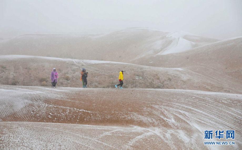 10月15日,游客在寧夏中衛(wèi)市沙坡頭景區(qū)欣賞沙漠雪景。深秋時(shí)節(jié),位于騰格里沙漠邊緣的寧夏中衛(wèi)市沙坡頭景區(qū)迎來(lái)一場(chǎng)降雪。漫漫黃沙被覆蓋在皚皚白雪之下,呈現(xiàn)出一種別樣的美。新華網(wǎng)杜文杰攝