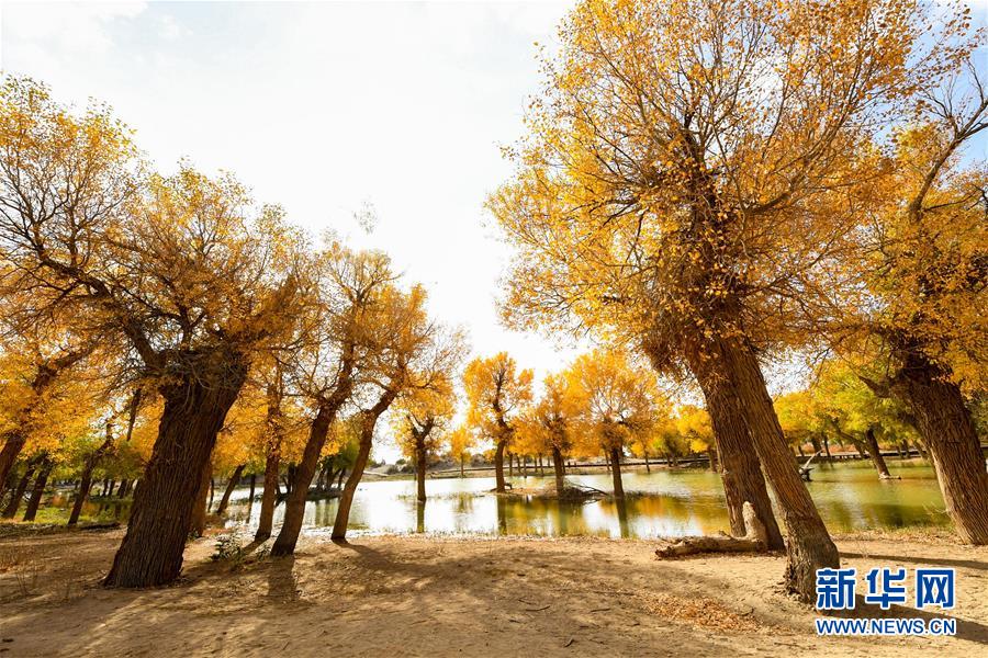 大片的胡楊樹葉由綠變黃,一眼望去,陽光下金色的樹葉襯著湛藍(lán)的天空于風(fēng)中婆娑起舞。