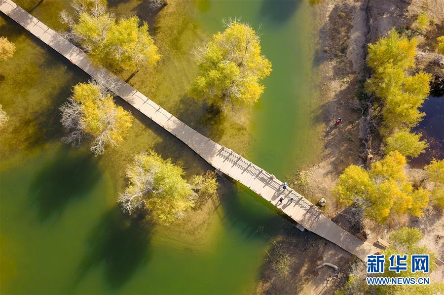 10月16日,游客在內(nèi)蒙古自治區(qū)額濟(jì)納旗的胡楊林游覽。新華社記者丁洪法攝