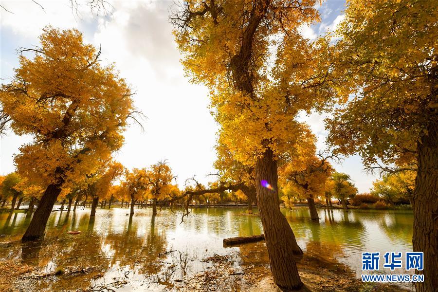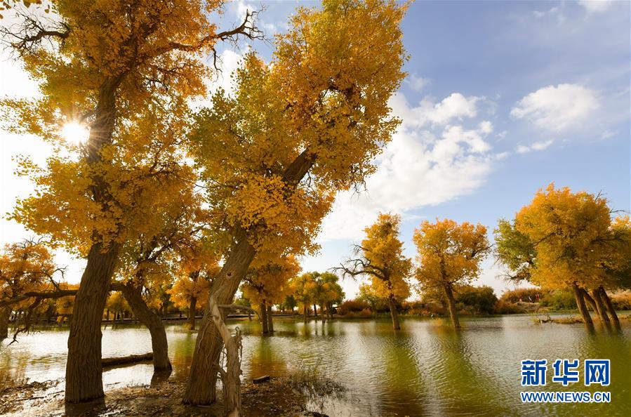 10月16日,這是內(nèi)蒙古阿拉善盟額濟(jì)納旗境內(nèi)的胡楊林。金秋時節(jié),位于內(nèi)蒙古阿拉善盟額濟(jì)納旗境內(nèi)的胡楊林披上了金黃色的外衣,在陽光的照射下呈現(xiàn)絢麗奪目的色彩,成為沙漠深處的一抹亮色。新華社記者彭源攝