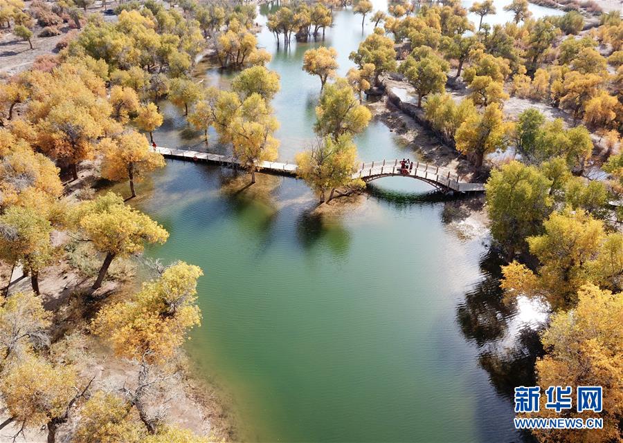 這是在內(nèi)蒙古自治區(qū)額濟納旗拍攝的胡楊林(10月16日無人機拍攝)。新華社記者丁洪法攝