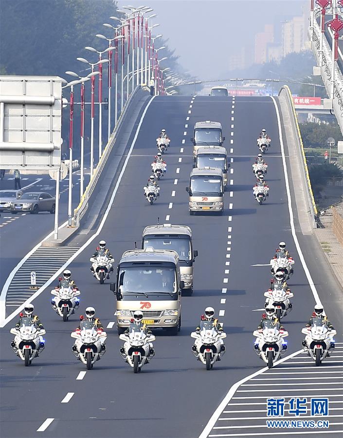 9月29日上午,國家勛章和國家榮譽(yù)稱號獲得者乘坐禮賓車從住地出發(fā),在國賓護(hù)衛(wèi)隊(duì)的護(hù)衛(wèi)下,前往人民大會堂參加中華人民共和國國家勛章和國家榮譽(yù)稱號頒授儀式。 新華社記者 燕雁 攝