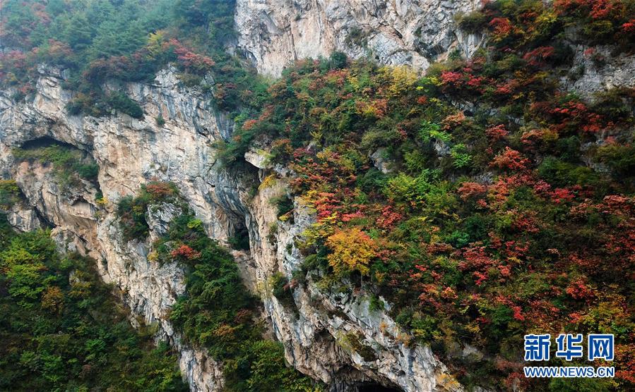這是西狹頌景區(qū)秋景(10月16日無人機拍攝)。新華社記者陳斌攝
