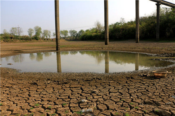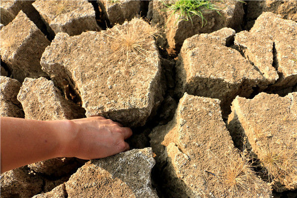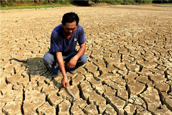 當?shù)貢r間2016年5月13日,柬埔寨甘丹省,受厄爾尼諾現(xiàn)象影響,當?shù)卦庥龈珊堤鞖猓靥粮珊蚤_裂。