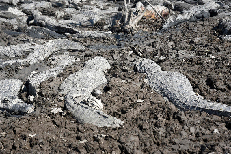 當?shù)貢r間2016年6月24日,巴拉圭General Diaz,巴拉圭與阿根廷邊境遭遇嚴重干旱,皮科馬約河河水枯竭,凱門鱷在水塘內(nèi)。