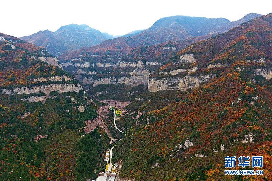 山西省靈石縣境內(nèi)的太岳山風(fēng)光(10月24日無人機(jī)拍攝)。