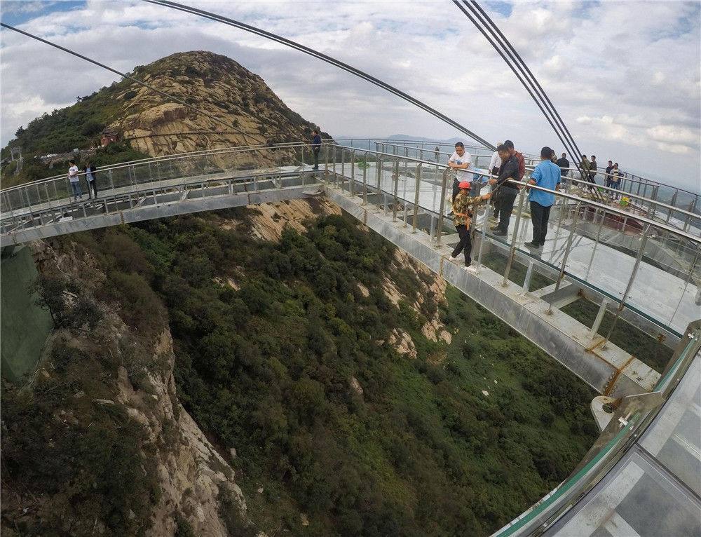恐高勿入!“高空玻璃懸廊”在河南南陽七峰山落成