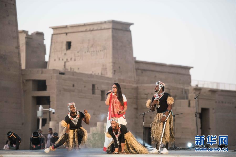 10月27日,演員在位于埃及阿斯旺的菲萊神廟表演。 第四屆中非藝術(shù)節(jié)27日在埃及南部歷史文化名城阿斯旺開幕。來自中國、埃及、尼日利亞、烏干達(dá)、突尼斯等約30個(gè)國家的藝術(shù)團(tuán)在開幕式上奉獻(xiàn)了各具特色的表演,吸引數(shù)百名當(dāng)?shù)赜^眾前往欣賞。  新華社記者 鄔惠我 攝
