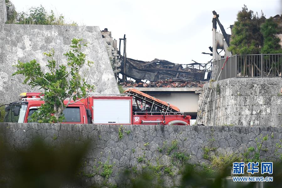 這是10月31日在日本沖繩縣那霸市的琉球王國都城遺址首里城拍攝的被燒毀的建筑。新華社記者華義攝