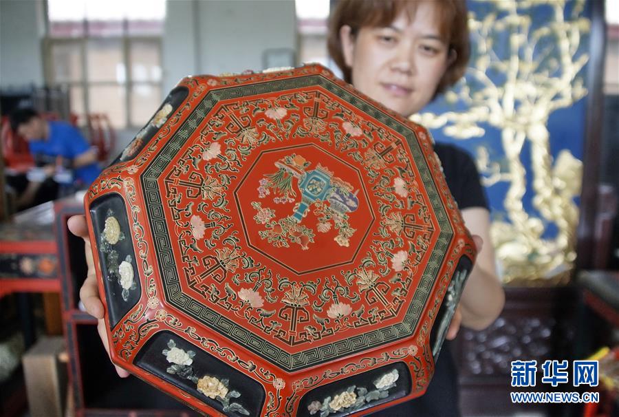 這是北京金漆鑲嵌有限責任公司技師制作的金漆鑲嵌作品(10月31日攝)。新華社記者李欣攝