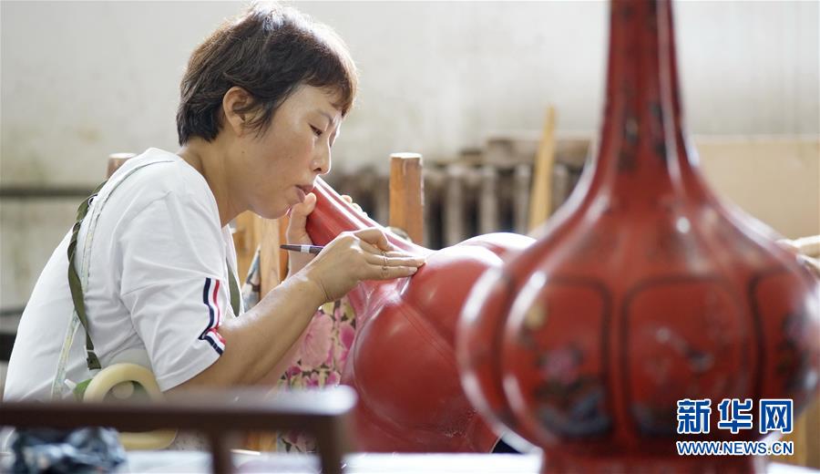 北京金漆鑲嵌有限責任公司的技師在制作漆藝瓶(10月31日攝)。新華社記者李欣攝