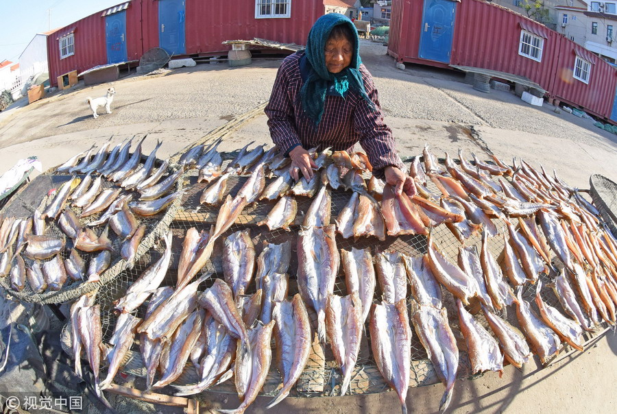 青島漁民古法曬魚 口感勁道別有風(fēng)味