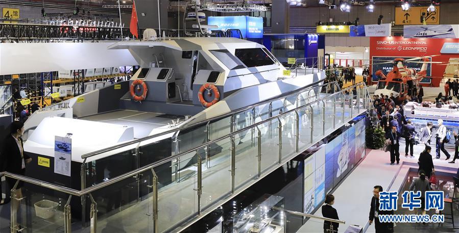 這是在第二屆進博會裝備展區(qū)拍攝的法拉帝公司的FSD195高速公務巡邏船(11月8日攝)。這艘全長20米、重約37噸的公務船大量采用碳纖維和鈦金屬等新型材料。新華社記者方喆攝