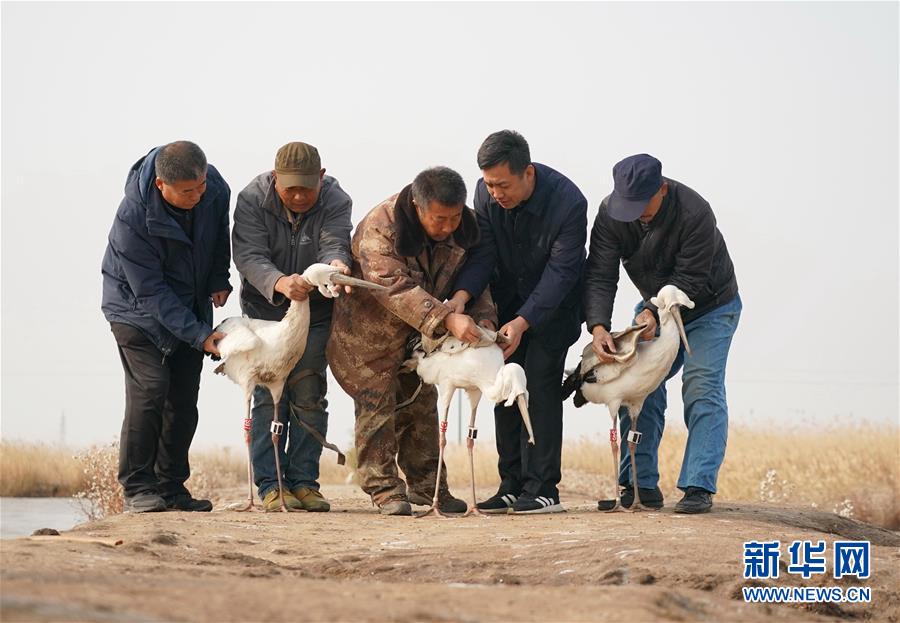 11月16日,在樂亭縣野生動(dòng)物保護(hù)協(xié)會大清河鳥類救助站,工作人員放飛國家一級保護(hù)動(dòng)物東方白鸛。新華社記者楊世堯攝