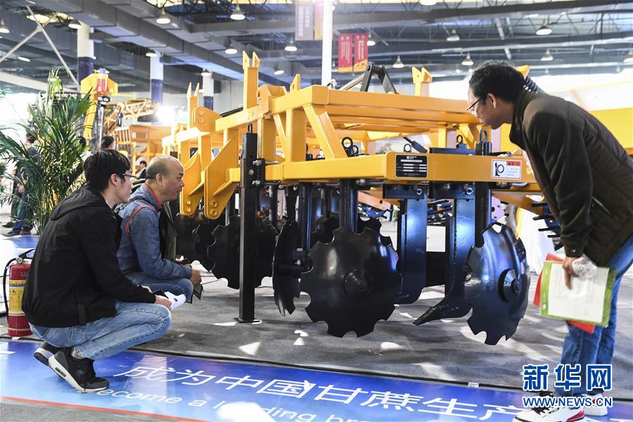 11月16日,參觀者在展會現(xiàn)場參觀與甘蔗生產(chǎn)有關(guān)的機械設備。新華社記者曹祎銘攝