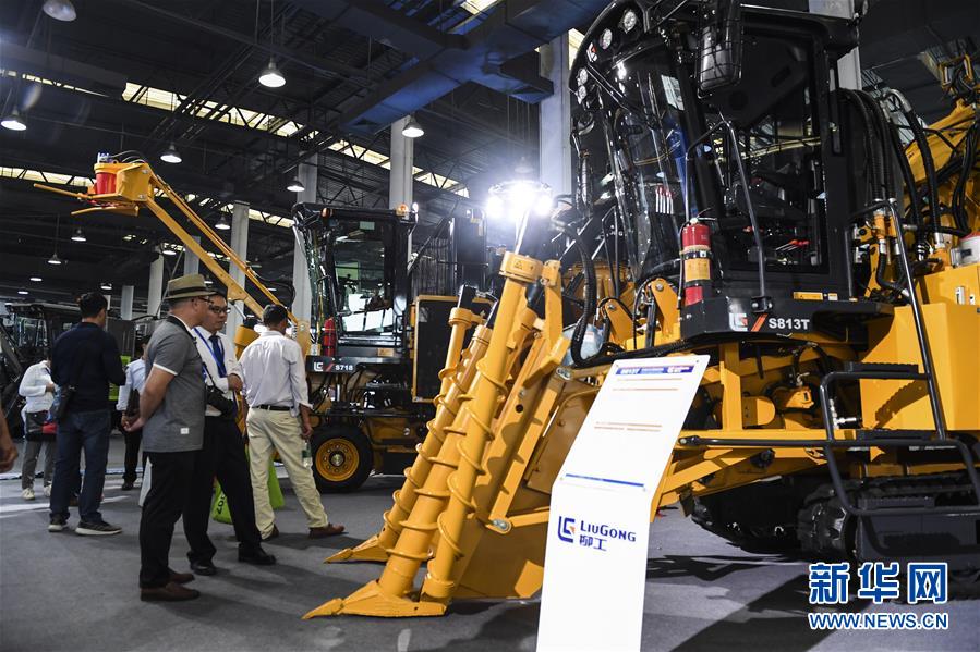 11月16日,參觀者在展會現(xiàn)場參觀甘蔗收割機(jī)械設(shè)備。新華社記者曹祎銘攝