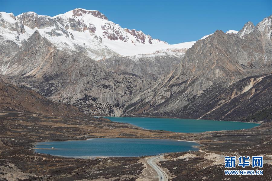 這是在川藏公路四川海子山埡口拍攝的姊妹海(2018年11月25日攝)。新華社記者江宏景攝
