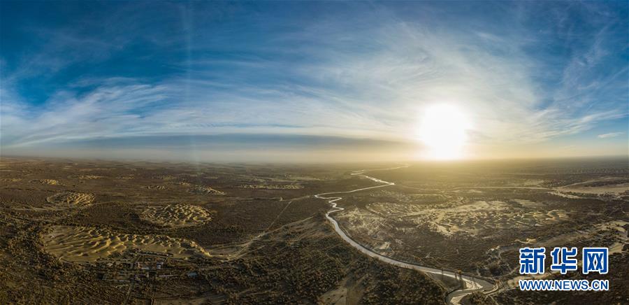 這是克里雅河及沿岸的胡楊林(11月13日無人機(jī)全景拍攝)。 新華社記者 沈伯韓 攝