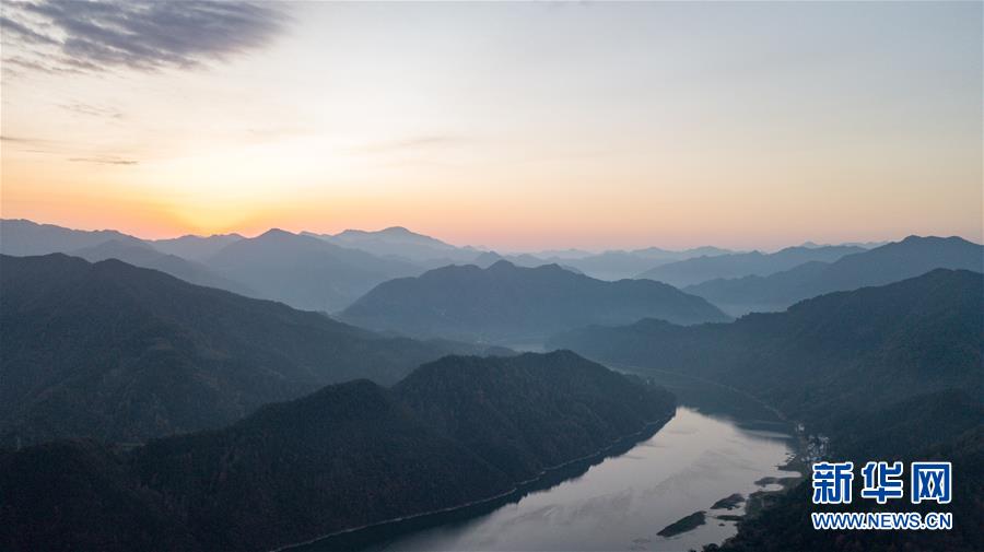 這是11月16日無人機(jī)拍攝的新安江山水畫廊景色。新華社記者韓曉雨攝