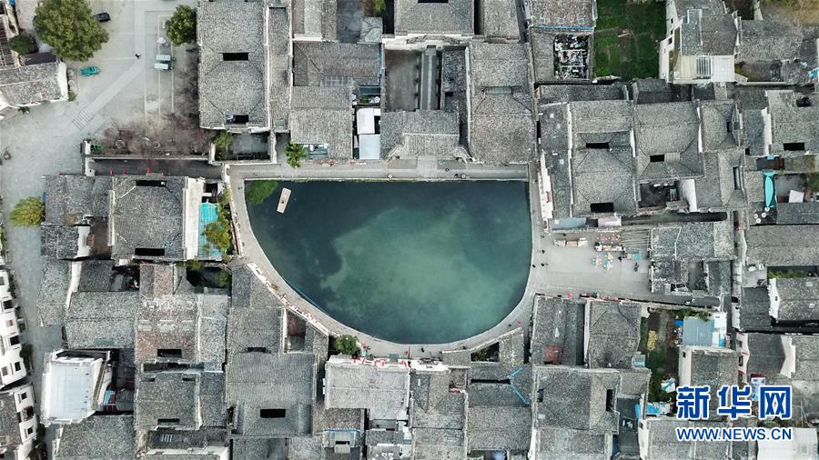這是11月15日無人機(jī)拍攝的宏村月沼晨景。新華社記者韓曉雨攝