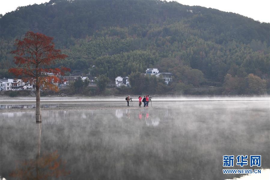 11月14日,游客在奇墅湖邊拍攝風光。新華社記者劉軍喜攝