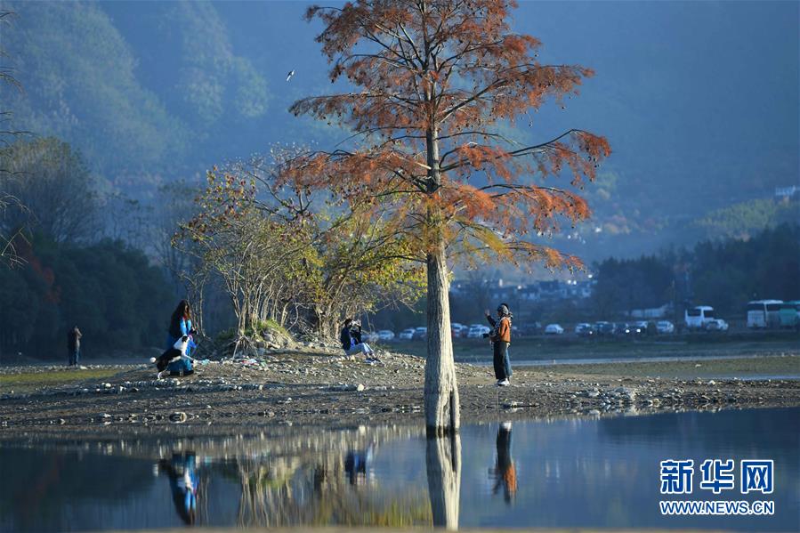 11月14日,游客在奇墅湖邊游玩。新華社記者張端攝