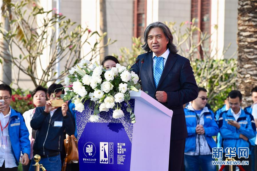 11月19日,金雞雕塑設(shè)計(jì)者、中國(guó)美術(shù)館館長(zhǎng)吳為山在第28屆金雞百花電影節(jié)金雞雕塑揭幕儀式上致辭。新華社記者姜克紅攝