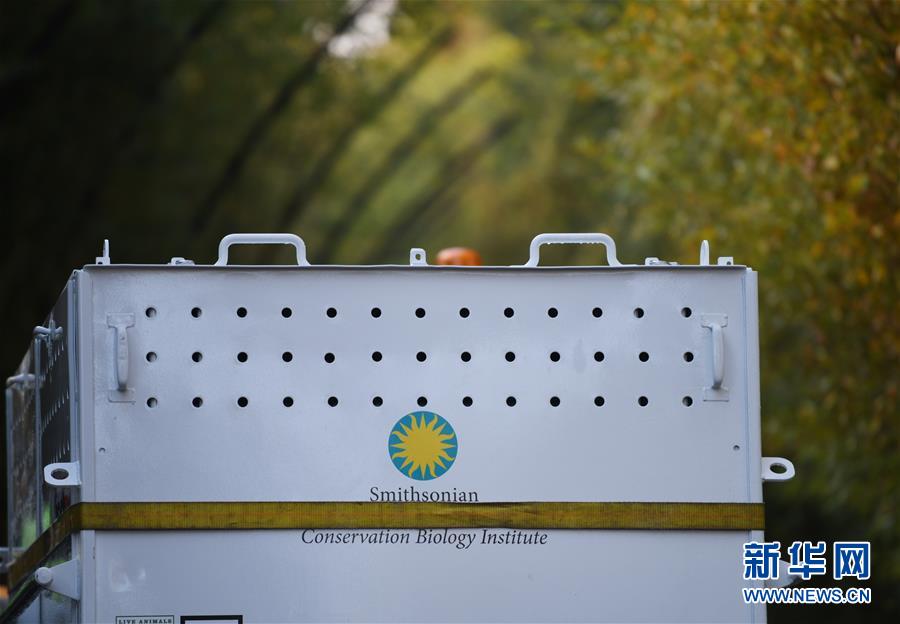 11月19日,在美國華盛頓的美國國家動物園,裝有大熊貓“貝貝”的箱子被運往卡車,準(zhǔn)備前往機場。 新華社記者 劉杰 攝