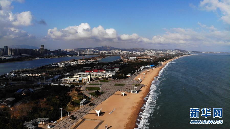11月22日無人機拍攝的日照市萬平口海濱風景區(qū)。山東省日照市萬平口海濱風景區(qū)是當?shù)芈糜蔚囊粡垺懊保摼皡^(qū)憑借優(yōu)美的海灘、良好的水質(zhì)吸引了不少游客。新華社記者王凱攝