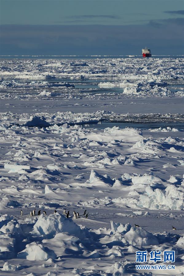 從“雪龍2”號上拍攝的企鵝群(11月19日攝)。新華社記者劉詩平攝