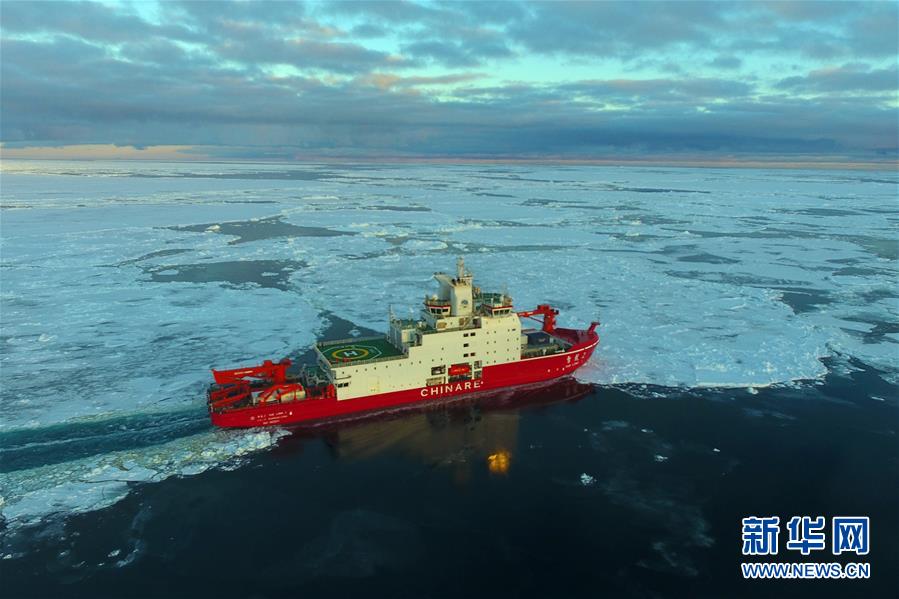 航行在南極圈內浮冰區(qū)的“雪龍2”號(11月19日無人機拍攝)。新華社記者劉詩平攝