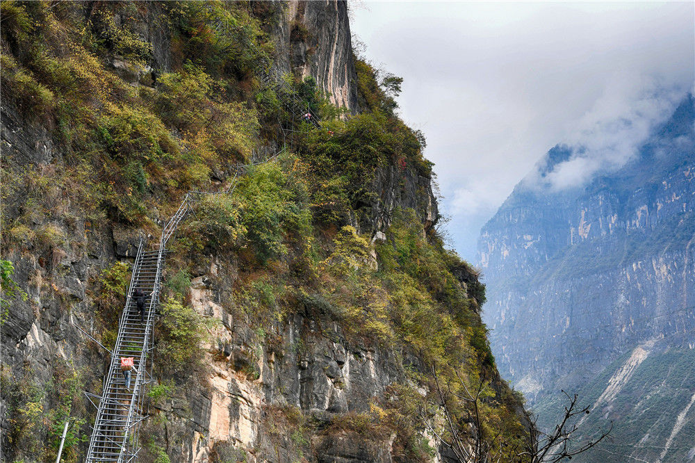 2019年11月16日,四川涼山,昭覺縣支爾莫鄉(xiāng)阿土列爾村的“鋼管天梯”。