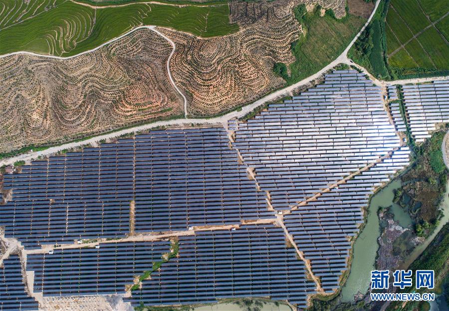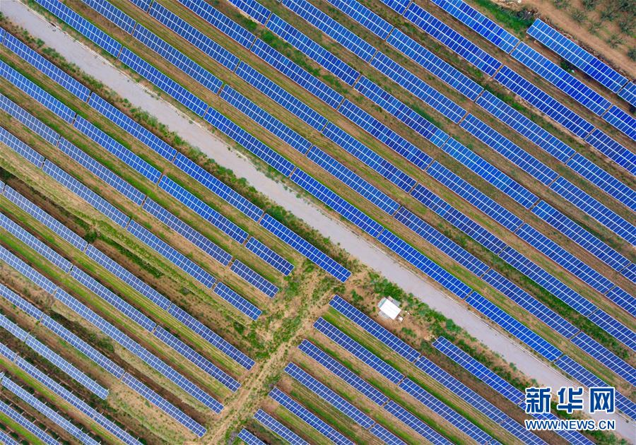 這是7月5日拍攝的山西省運城市芮城縣光伏領(lǐng)跑技術(shù)基地(無人機拍攝)。新華社記者曹陽攝