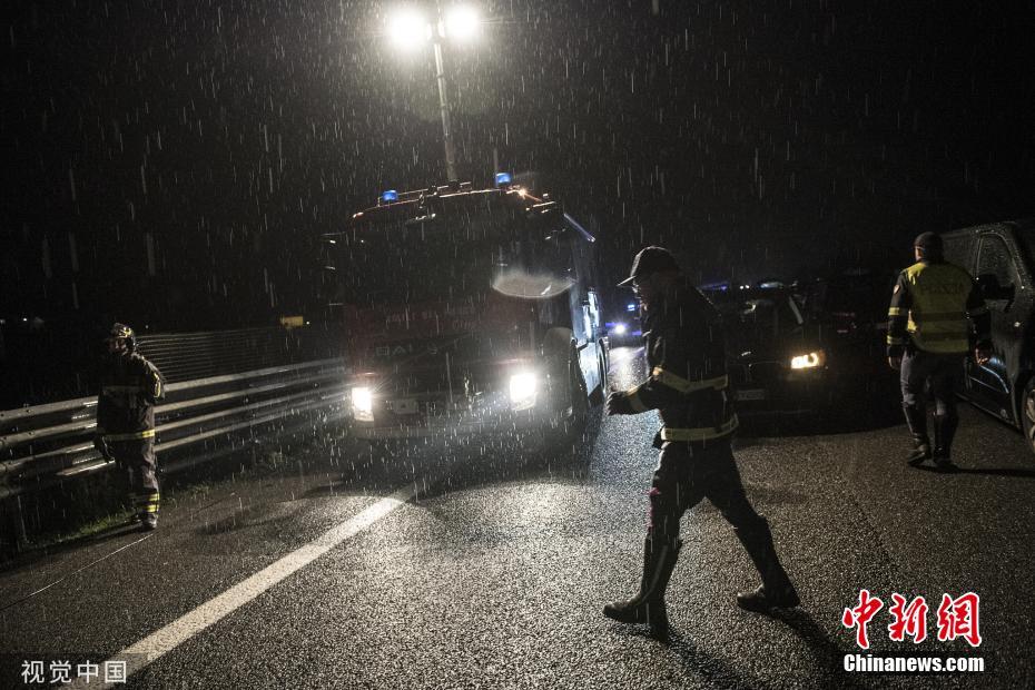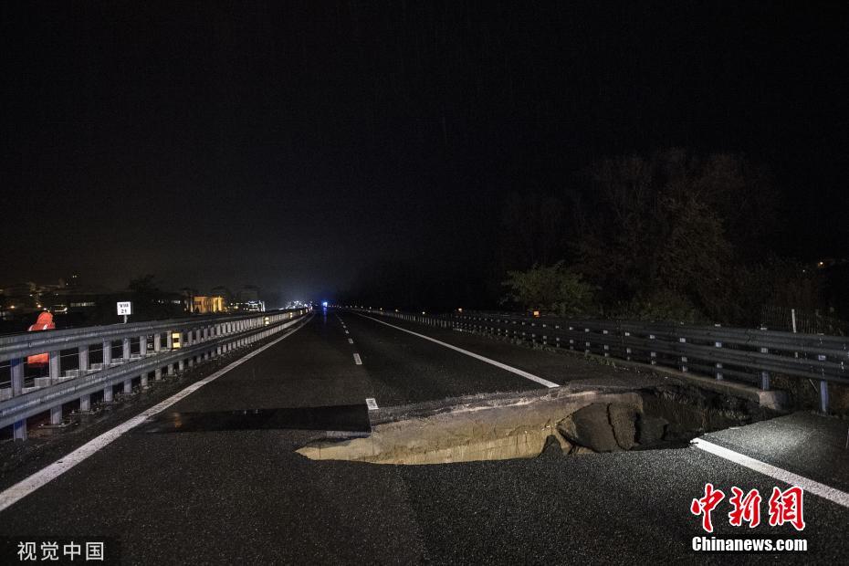暴雨過后 意大利高速公路出現(xiàn)“大坑”