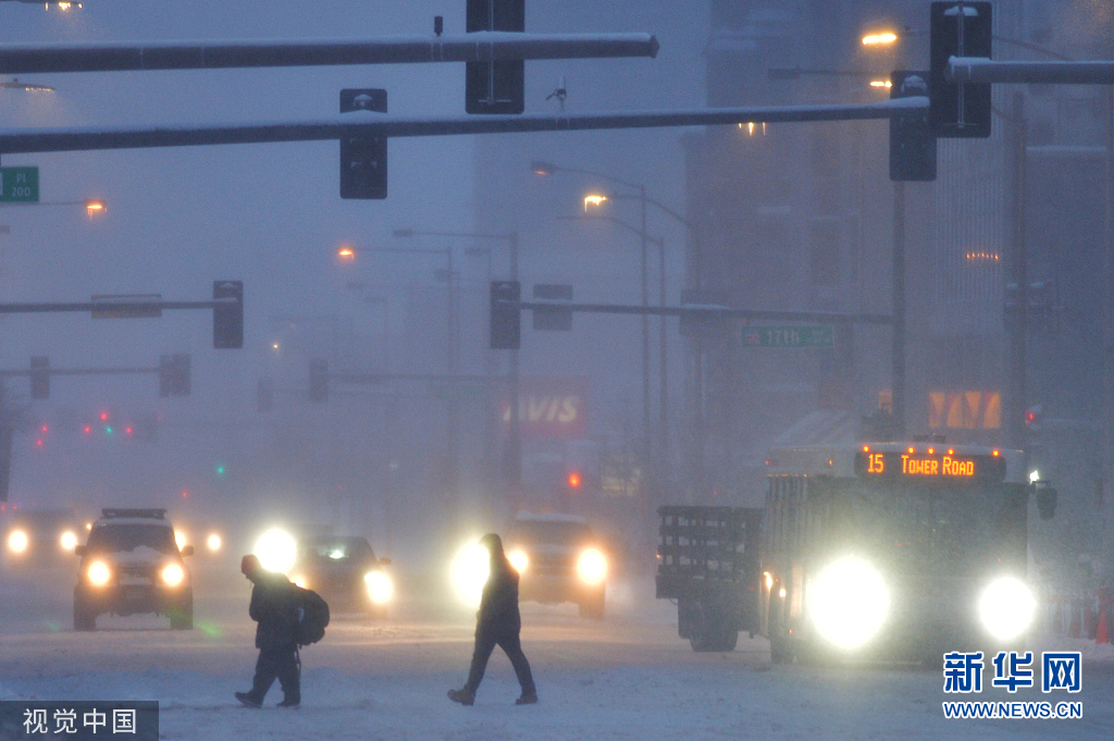 當(dāng)?shù)貢r間11月26日,美國丹佛,一場大暴風(fēng)雪襲擊了丹佛市區(qū)。(圖片來源:視覺中國)