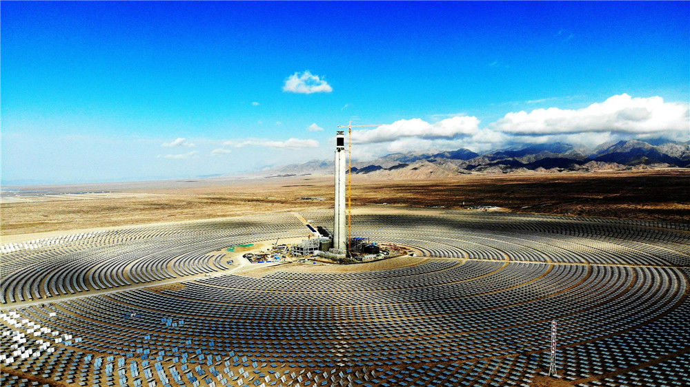 2018年10月13日,地處青海省海西州德令哈市的中控太陽能發(fā)電有限公司10兆瓦塔式熔鹽光熱電站。位于中國西部的青海省,有“三江源”“中華水塔”之稱。如今,青海清潔能源正在從“風生水起”走向“風光無限”。青海太陽能資源約占中國的11%,光熱資源平均年輻射總量可達每平方米5860—7400兆焦耳,僅次于西藏;同時,該省可用于新能源開發(fā)的荒漠土地面積約10萬平方公里,裝機規(guī)??蛇_35億千瓦,折合年發(fā)電量約5.6萬億千瓦時,是三峽電站年發(fā)電量的56倍。