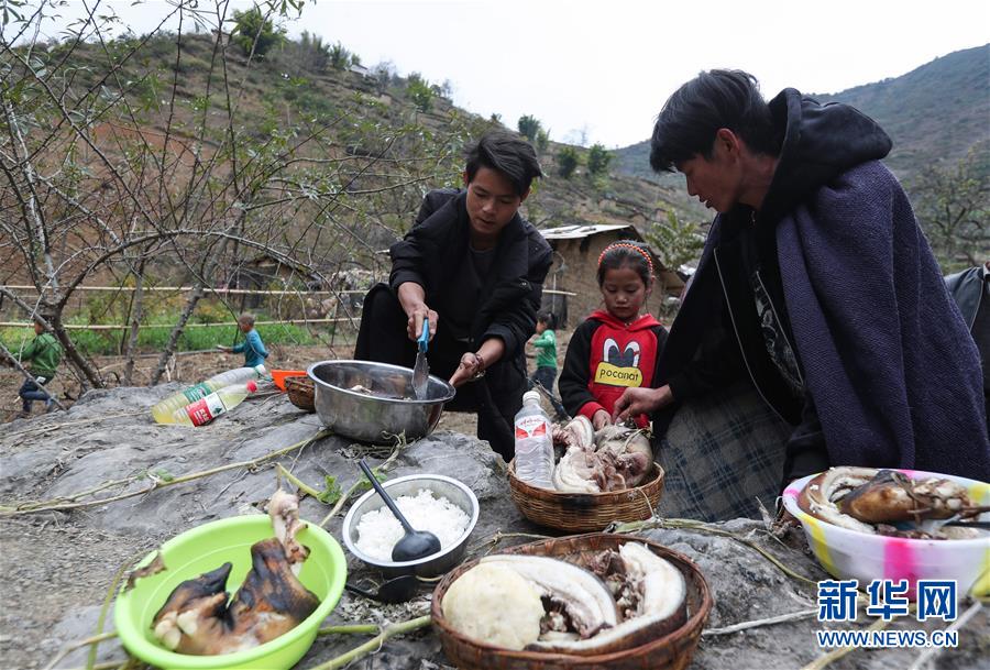 11月24日,在昭覺縣支爾莫鄉(xiāng)阿土列爾村,當(dāng)?shù)鼐用駵?zhǔn)備熟食、酒等食物祭祖,并相互贈送。11月20日至26日是四川省涼山彝族自治州大小涼山彝族群眾傳統(tǒng)節(jié)日——彝族年,懸崖上的阿土列爾村的彝族群眾殺年豬、祭祀和走親拜年,慶祝一年一度的彝族年。阿土列爾村是“懸崖村”,位于四川省涼山彝族自治州昭覺縣支爾莫鄉(xiāng),坐落在海拔1400-1600米山坳中,這里居住著60多戶彝族群眾,村民走出大山,需要攀爬懸崖。新華社記者江宏景攝
