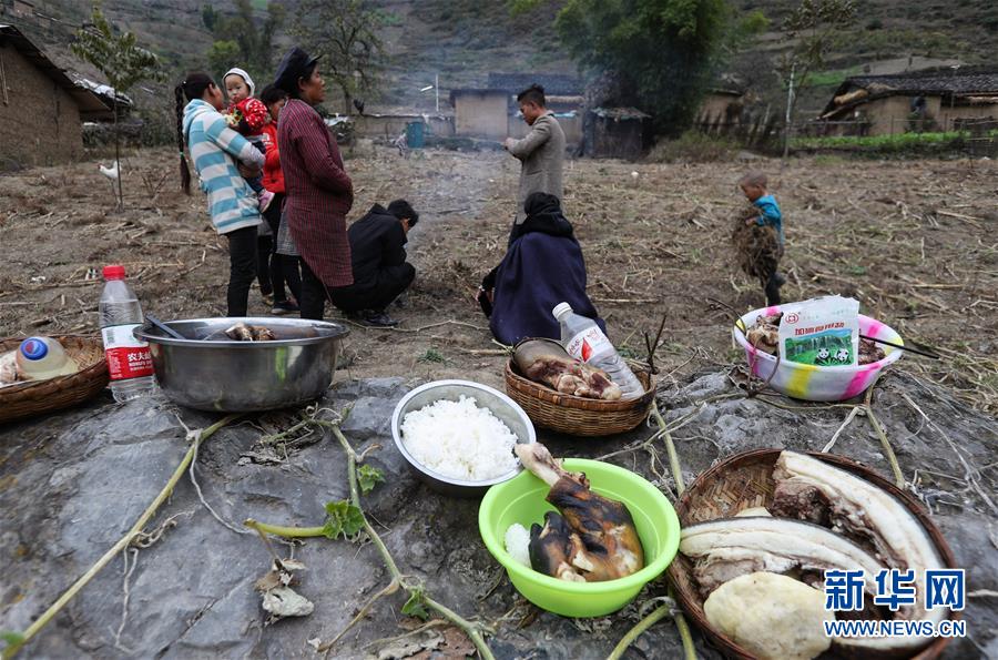 11月24日,在昭覺縣支爾莫鄉(xiāng)阿土列爾村,當?shù)鼐用駵蕚涫焓?、酒等食物祭祖,并相互贈送?1月20日至26日是四川省涼山彝族自治州大小涼山彝族群眾傳統(tǒng)節(jié)日——彝族年,懸崖上的阿土列爾村的彝族群眾殺年豬、祭祀和走親拜年,慶祝一年一度的彝族年。阿土列爾村是“懸崖村”,位于四川省涼山彝族自治州昭覺縣支爾莫鄉(xiāng),坐落在海拔1400-1600米山坳中,這里居住著60多戶彝族群眾,村民走出大山,需要攀爬懸崖。新華社記者江宏景攝