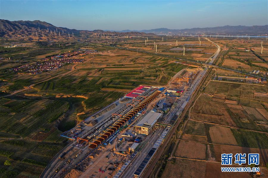 5月28日無人機(jī)拍攝的建設(shè)中的京張高鐵懷來站。新華社記者邢廣利攝