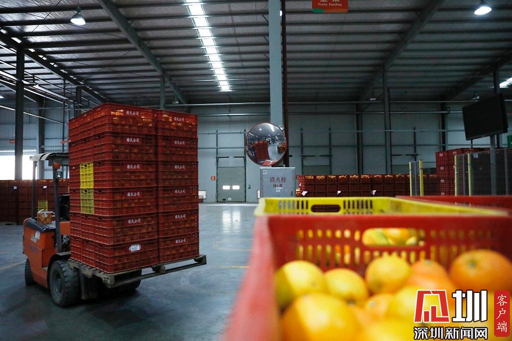 一輛叉車準(zhǔn)備運(yùn)送臍橙。
