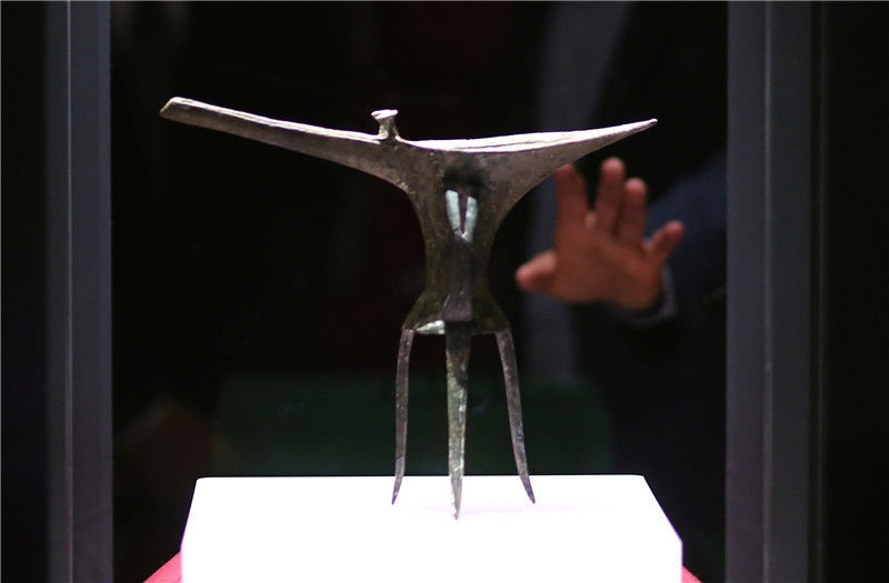 2019年10月19日,河南洛陽(yáng),二里頭夏都遺址博物館。二里頭夏都遺址博物館鎮(zhèn)館之寶:“乳釘紋銅爵”是中國(guó)目前發(fā)現(xiàn)的時(shí)代最早的青銅器之一,被譽(yù)為“華夏第一爵”。