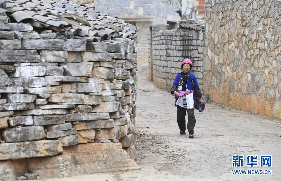 11月28日,69歲的大糯黑村村民何蘭香在村里的商店買完?yáng)|西后回家。