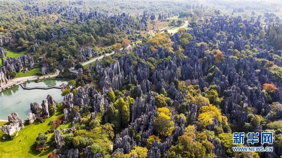 11月28日,空中俯瞰石林景區(qū)(無人機(jī)拍攝)。新華社記者江文耀攝